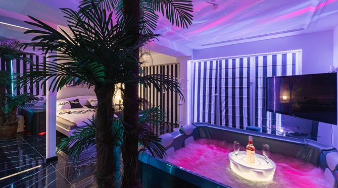 Apartament dla 2 osób z prywatnym Jacuzzi i klimatyzacją w pokoju na wyłączność bez limitów.