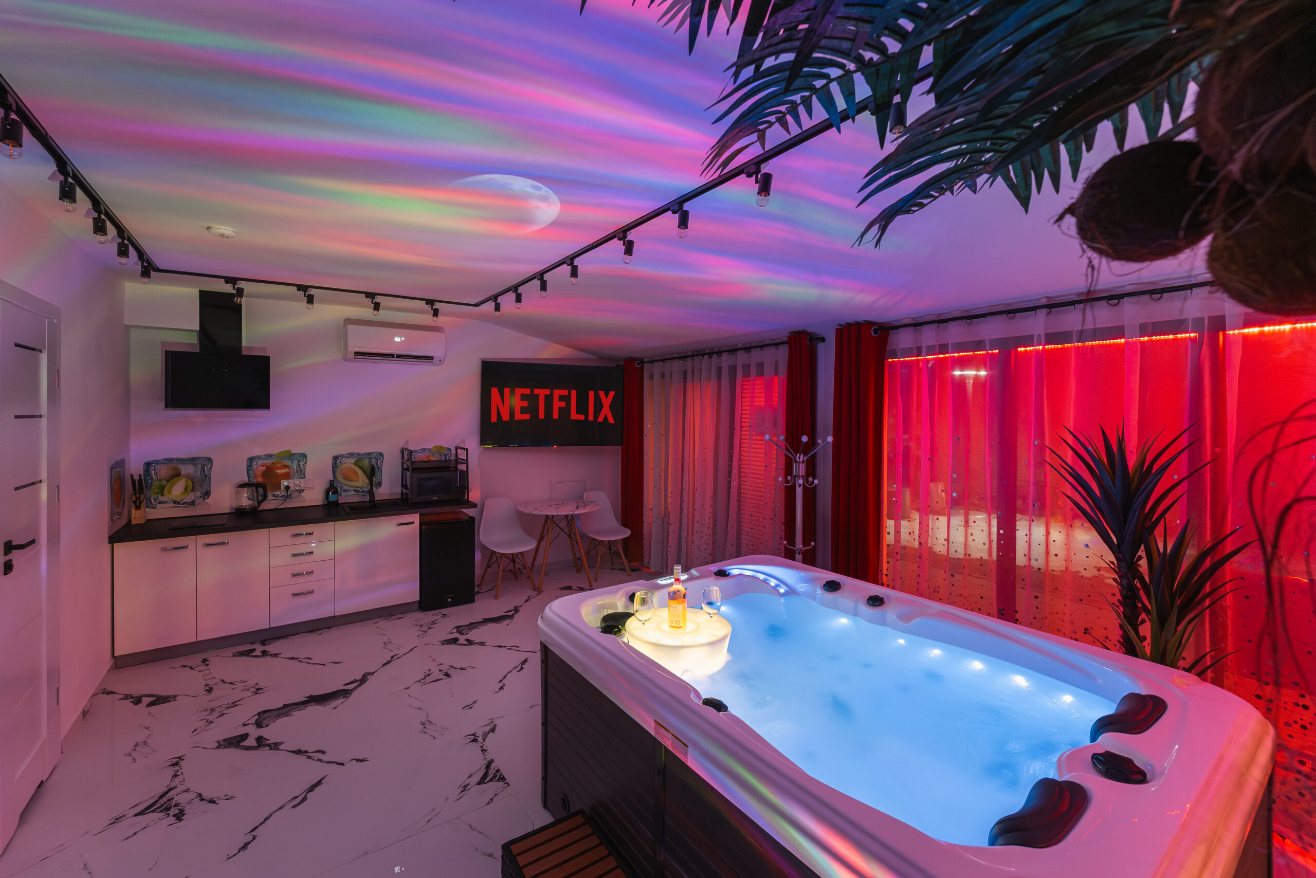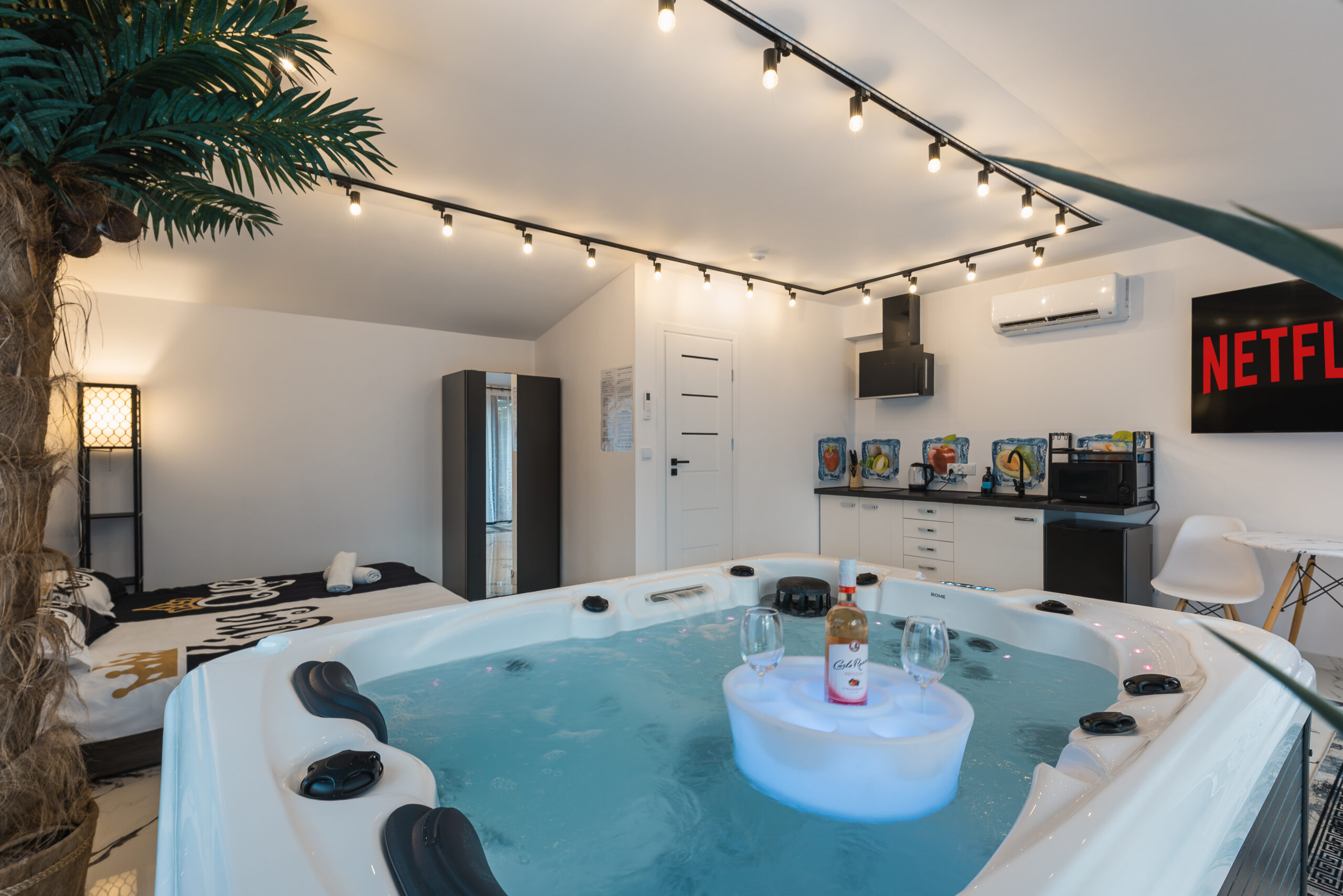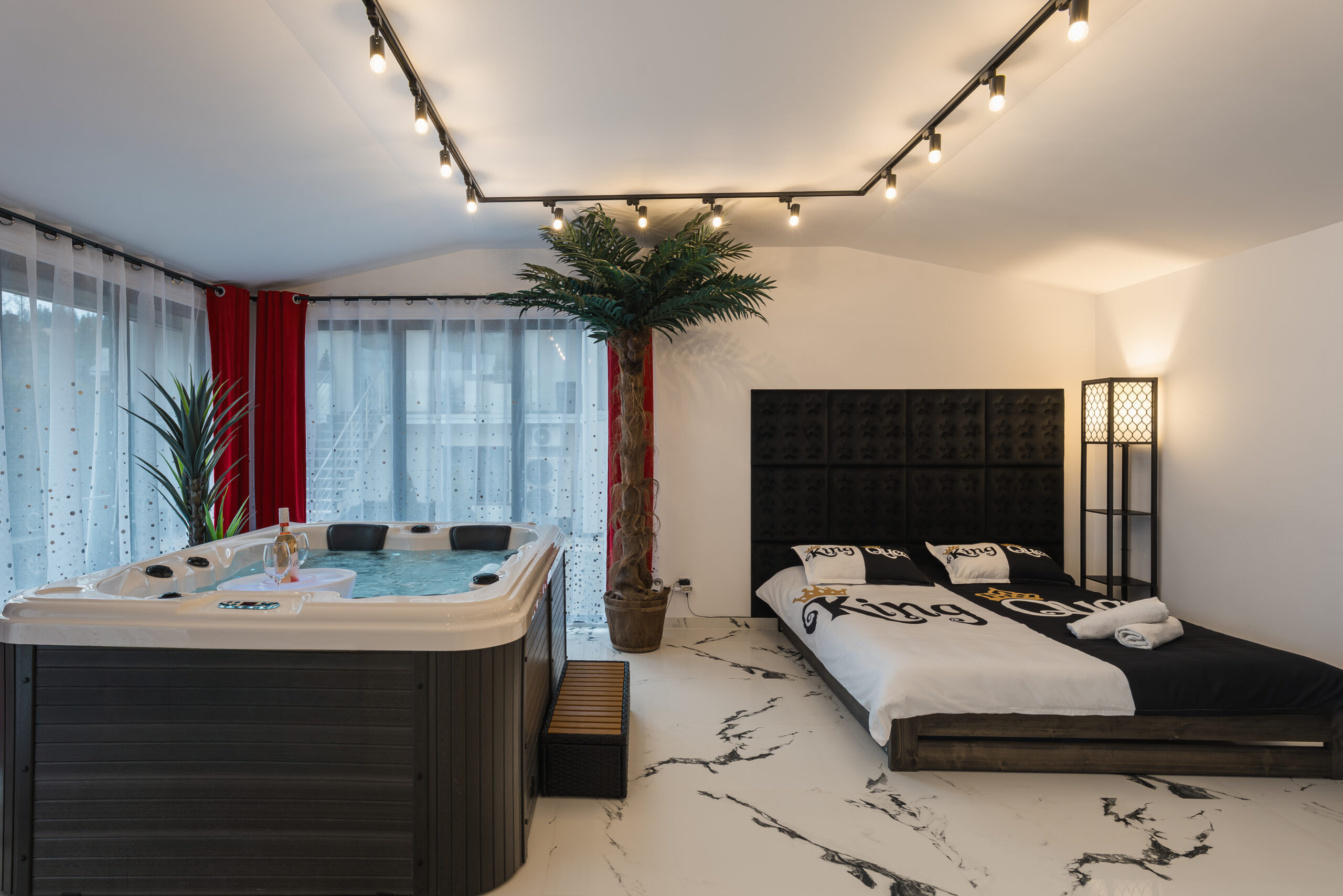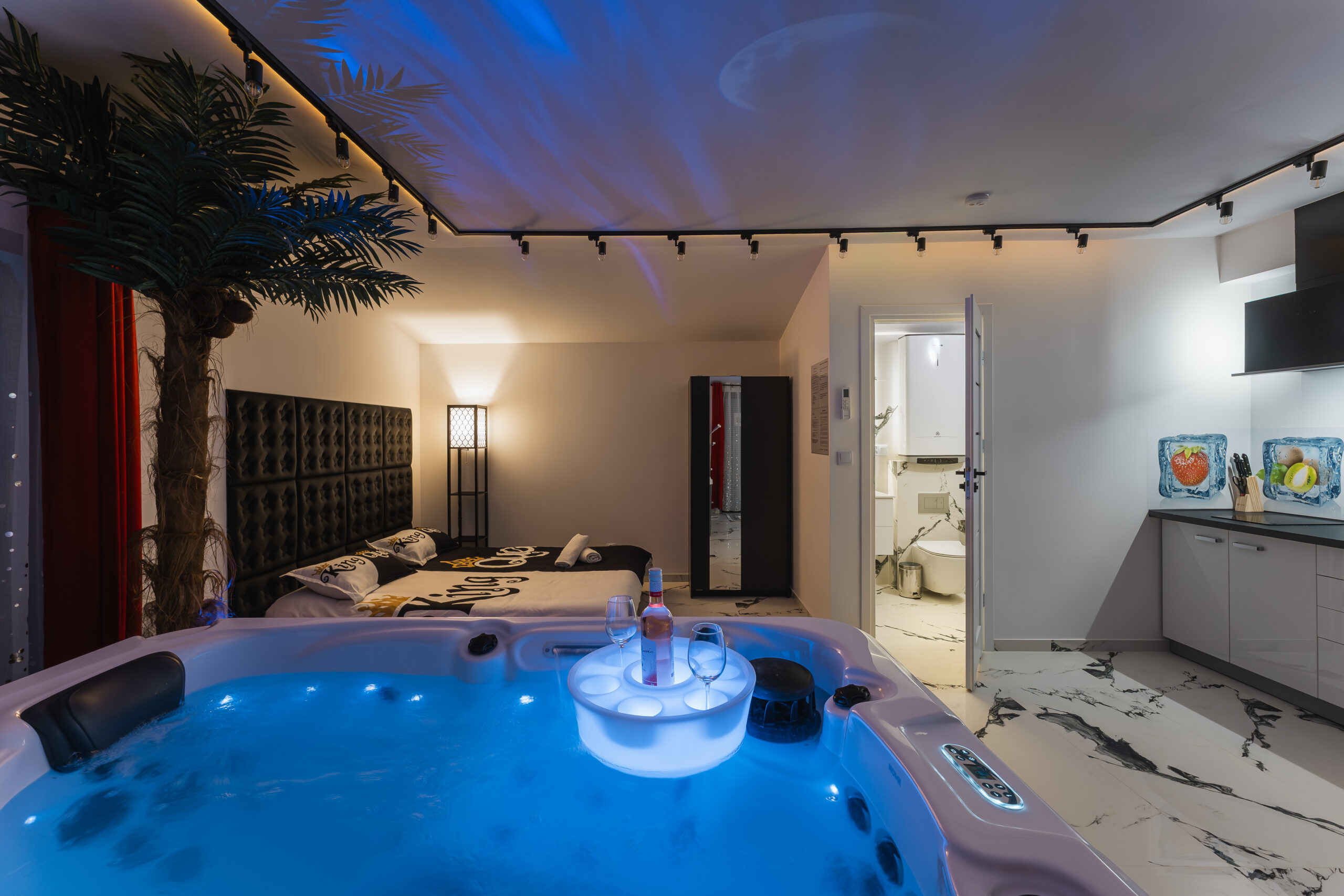 Apartament klimatyzowany dla 2 osób z prywatnym Jacuzzi w pokoju na wyłączność bez limitów i ograniczeń.